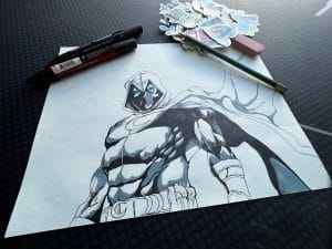 Step by step of how to sketch Moon Night in 15 minutes, for kids to keep creative.