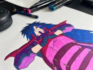 Step by step of how to sketch Anime Madara Uchiha on paper.