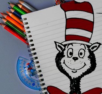 Step by step of how to sketch a Dr Seuss's Cat in the Hat in 10 minutes, for kids to keep and stay creative.