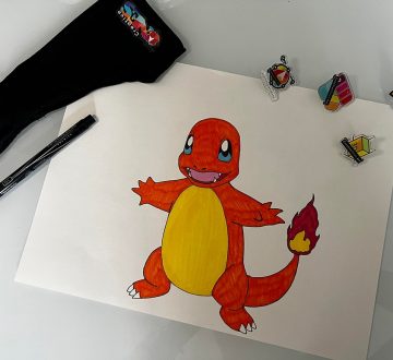 Step by step of how to sketch a Charmander Pokémon in 10 minutes, for kids to keep and stay creative.
