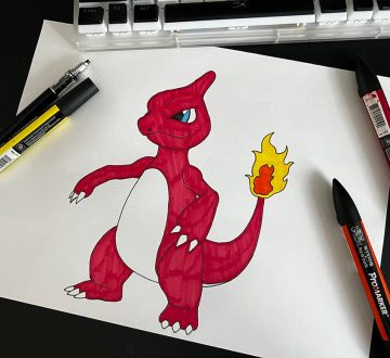 Step by step how to sketch, draw & paint Pokémon Charmeleon, for kids to keep creative.