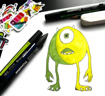 Step by step of how to sketch a Mike Wazowski in 20 minutes, for kids to keep creative.