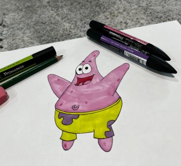 Step by step of how to sketch a Patrick from Sponge Bob Cartoons in 30 minutes, for kids to keep creative.
