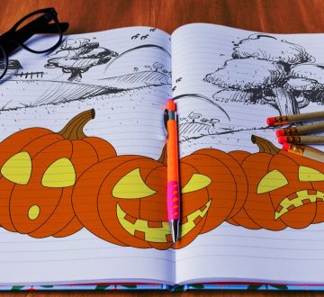 Step by step of how to sketch on paper 3 Jack-o’-lanterns