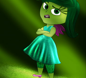 Drawing a digital illustration the disgust emotion character from Inside-Out movie, using procreate