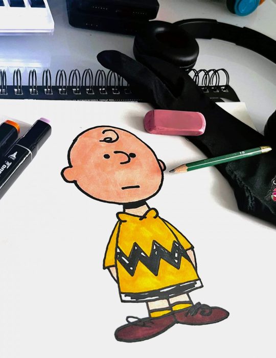 Step by step of how to sketch Charlie Brown in 4 minutes.