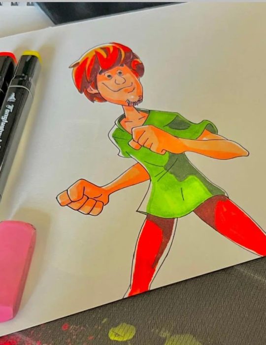Drawing a digital illustration of Fear Emotion character from Inside-Out movie